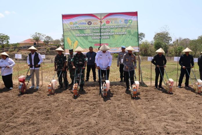 Berdikari.Online – Bupati Sumbawa, Ir. H. Syarafuddin Jarot, MP, menyatakan dukungan penuh terhadap rencana Polri menambah dua gudang ketahanan pangan di wilayah Sumbawa. Komitmen itu disampaikan saat kegiatan Penanaman Jagung Serentak Kwartal IV Tahun 2025 di lahan Gabungan Kelompok Tani (Gapoktan) Kecamatan Moyo Utara, Rabu (8/10/2025).