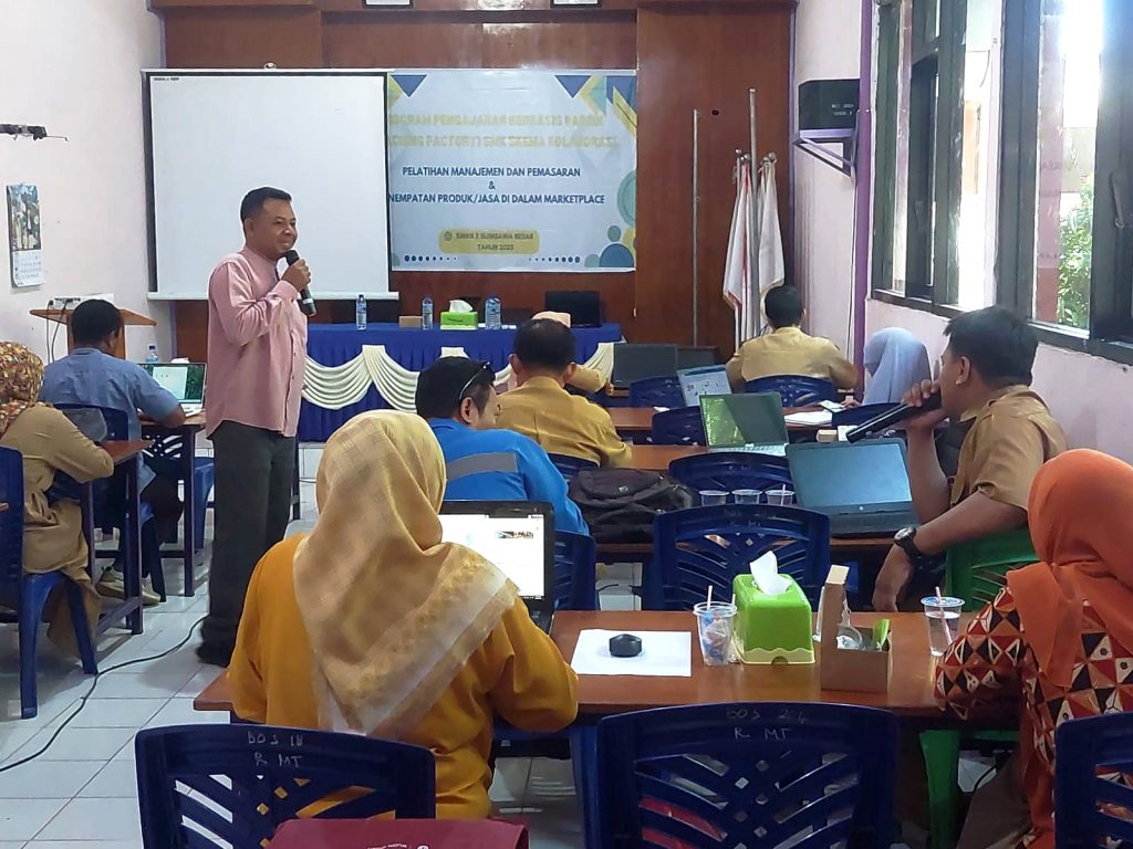Berdikari.Online — Dua dosen Fakultas Ekonomi dan Bisnis (FEB) Universitas Teknologi Sumbawa (UTS) berikan pelatihan pada guru SMKN 2 Sumbawa Besar (14/10/2025). Kegiatan ini merupakan bagian dari program Teaching Factory yang bertujuan memperkuat kemampuan guru dalam manajemen, pemasaran, dan penempatan produk atau jasa di marketplace.