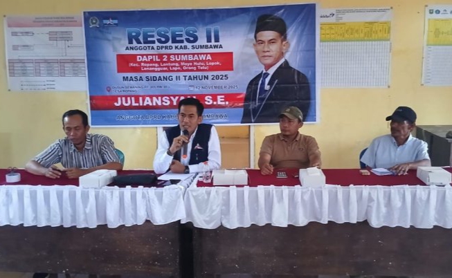 Berdikari.Online – Anggota DPRD Kabupaten Sumbawa dari Fraksi Demokrat PPP Pembangunan, Juliansyah, S.E., menyerap sejumlah aspirasi strategis masyarakat Kecamatan Ropang dalam kegiatan reses Masa Sidang II Tahun 2025 di Desa Ropang, Rabu (12/11).
