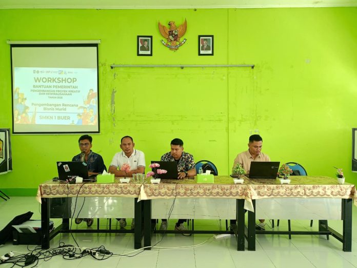 Berdikari.Online – SMKN 1 Buer, Kabupaten Sumbawa, NTB kini tengah memfokuskan program pengembangan Usaha Mikro, Kecil dan Menengah (UMKM) melalui berbagai produk kreatif siswa, seperti batik, resin gantungan kunci, trali, hingga produk makanan olahan. Untuk memperkuat wawasan kewirausahaan pelajar, sekolah menghadirkan dua dosen Fakultas Ekonomi dan Bisnis (FEB) Universitas Teknologi Sumbawa (UTS) sebagai narasumber pada kegiatan yang berlangsung 5 Desember lalu.
