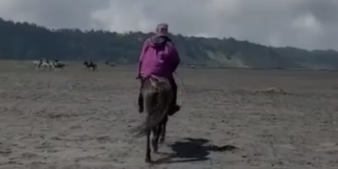 Saat itu ia berada di lautan pasir Gunung Bromo, Jawa Timur. Pria tersebut mengajak wisatawan untuk mencoba menaiki kuda.