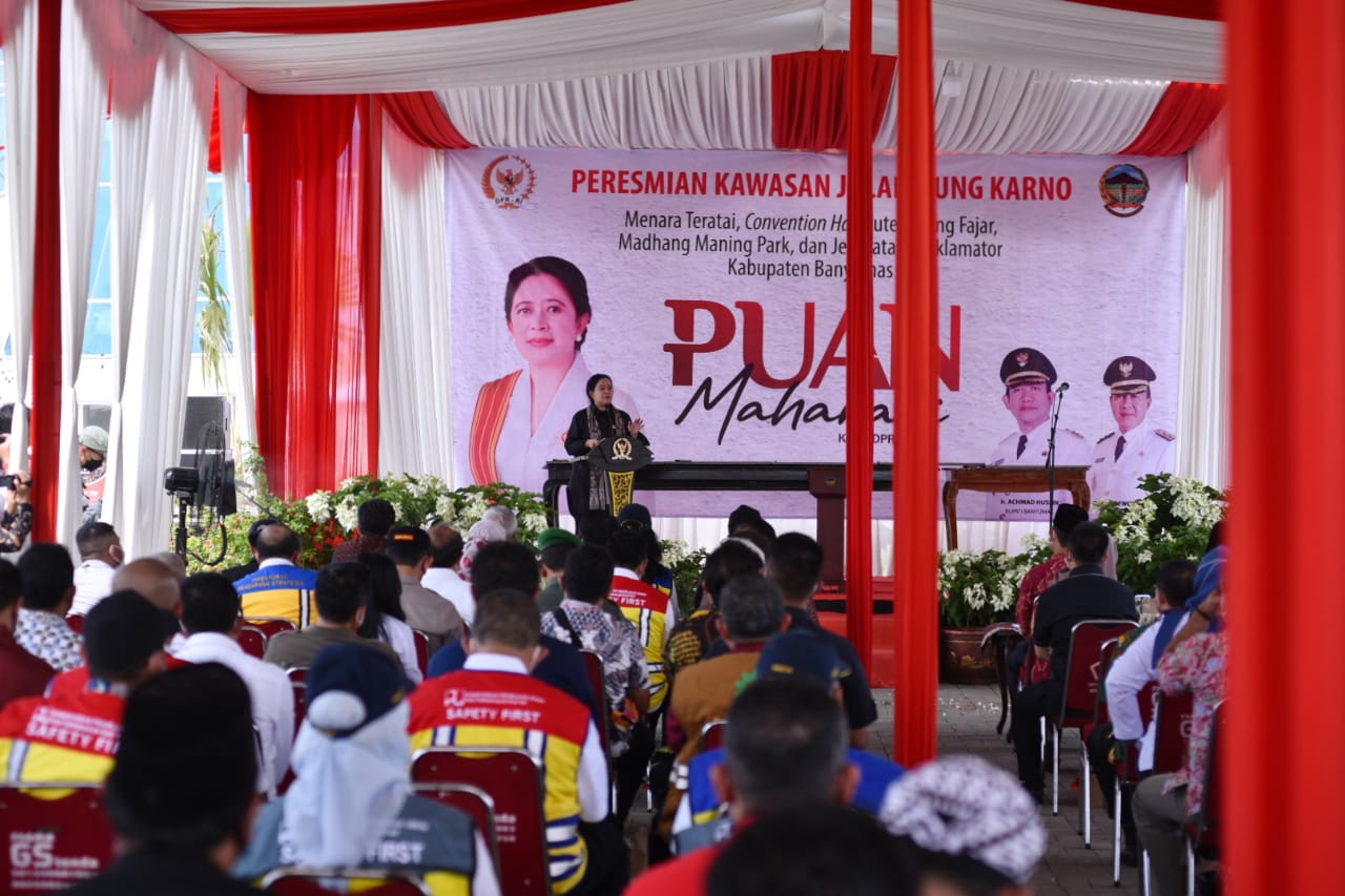 Berdikari.Online-Dalam kunjungannya ke Kabupaten Banyumas, Jawa Tengah, Ketua DPR RI Puan Maharani juga meresmikan kawasan Jalan Soekarno di Purwokerto. Selain jalan, Kawasan Bung Karno di ibu kota Banyumas itu berisi sejumlah fasilitas serta sarana dan prasarana.