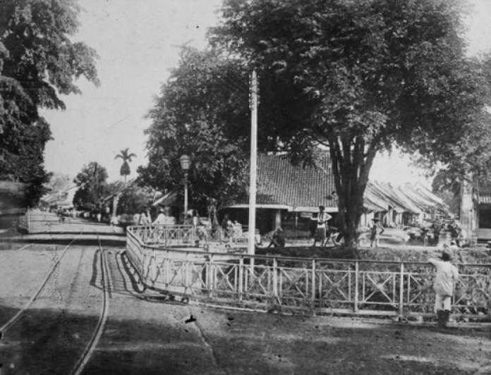 Berdikari.online – Foto yang diabadikan fotografer Woodbury & Page pada tahun 1870-an adalah Jembatan Kramat, Jakarta Pusat. Jembatan ini merupakan bagian paling ujung dari pertokoan Pasar Senen.