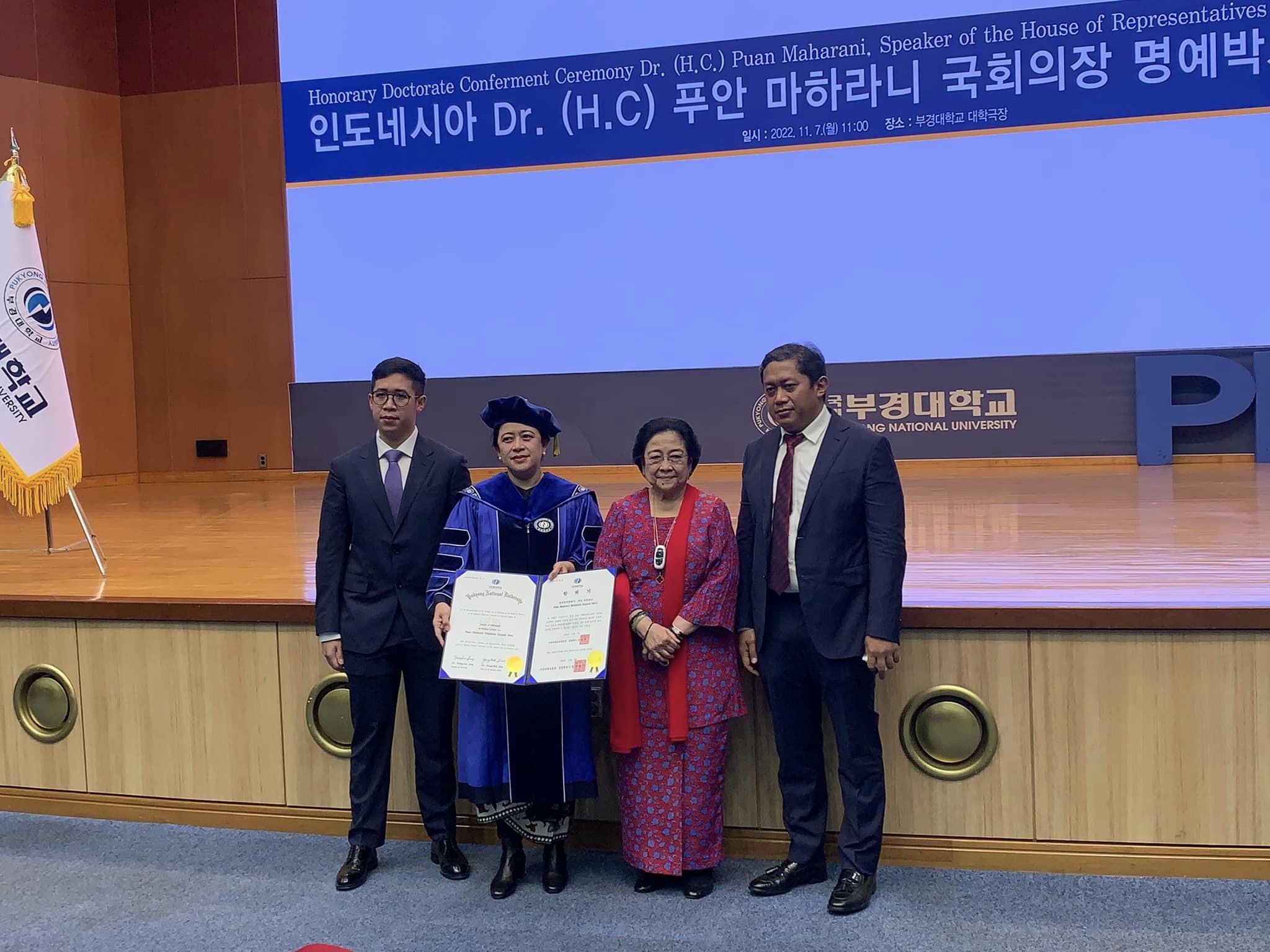 “Suatu kehormatan bagi saya menjadi bagian dari PKNU. Saya akan menjadi alumni PKNU. Sebagai alumni, saya akan berusaha memperkuat hubungan Korea Selatan, bukan hanya dalam hal pendidikan tapi juga hubungan antar negara,” kata Puan.