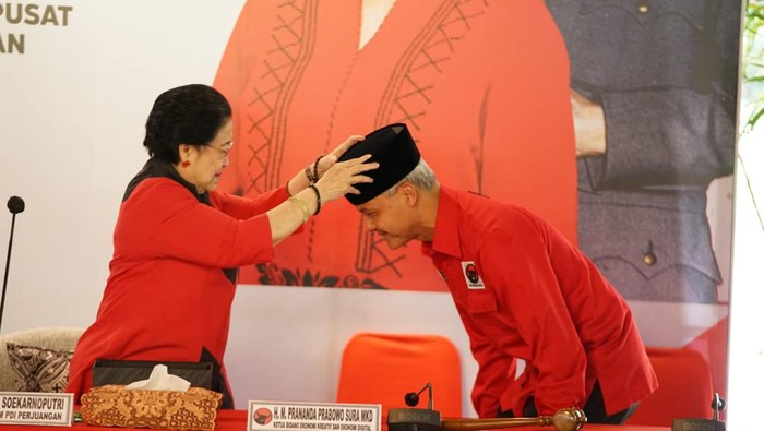“Pada jam 13.45 WIB dengan mengucap bismillah, menetapkan Ganjar Pranowo sebagai kader dan petugas partai, ditingkatkan tugasnya sebagai calon presiden,” ujar Megawati.