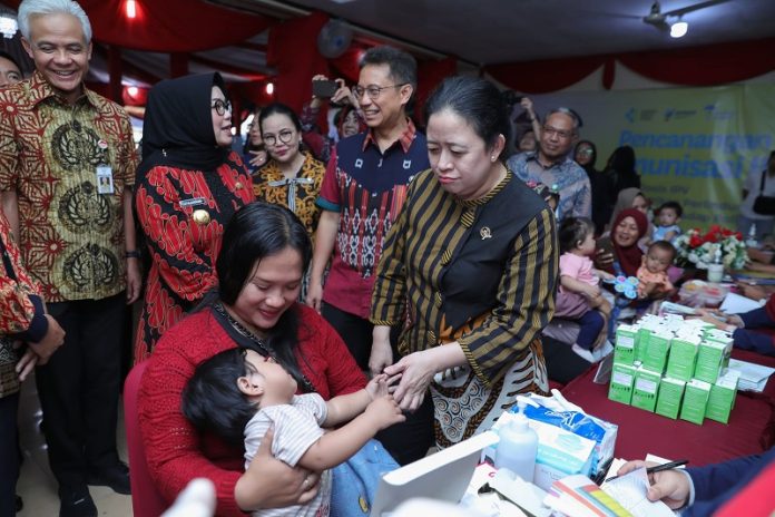 Berdikari.Online – Ketua DPR RI Puan Maharani menghadiri acara Pencanangan Inactivated Poliovirus Vaccine Dosis Kedua (IPV2) di Klaten, Jawa Tengah. Dalam acara yang diselenggarakan Kementerian Kesehatan (Kemenkes) ini, turut hadir Gubernur Jawa Tengah Ganjar Pranowo dan Wali Kota Solo Gibran Rakabuming Raka.