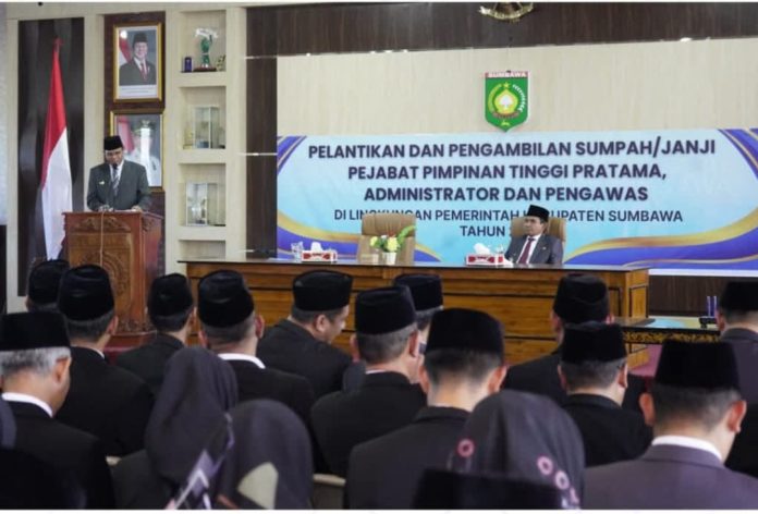 Berdikari.Online – Bupati Sumbawa, Ir. H. Syarafuddin Jarot, M.P., melantik 89 pejabat struktural di lingkungan Pemerintah Kabupaten Sumbawa pada Jumat (1/8/2025). Pelantikan berlangsung di Aula H. Madilaoe ADT, Kantor Bupati Sumbawa.